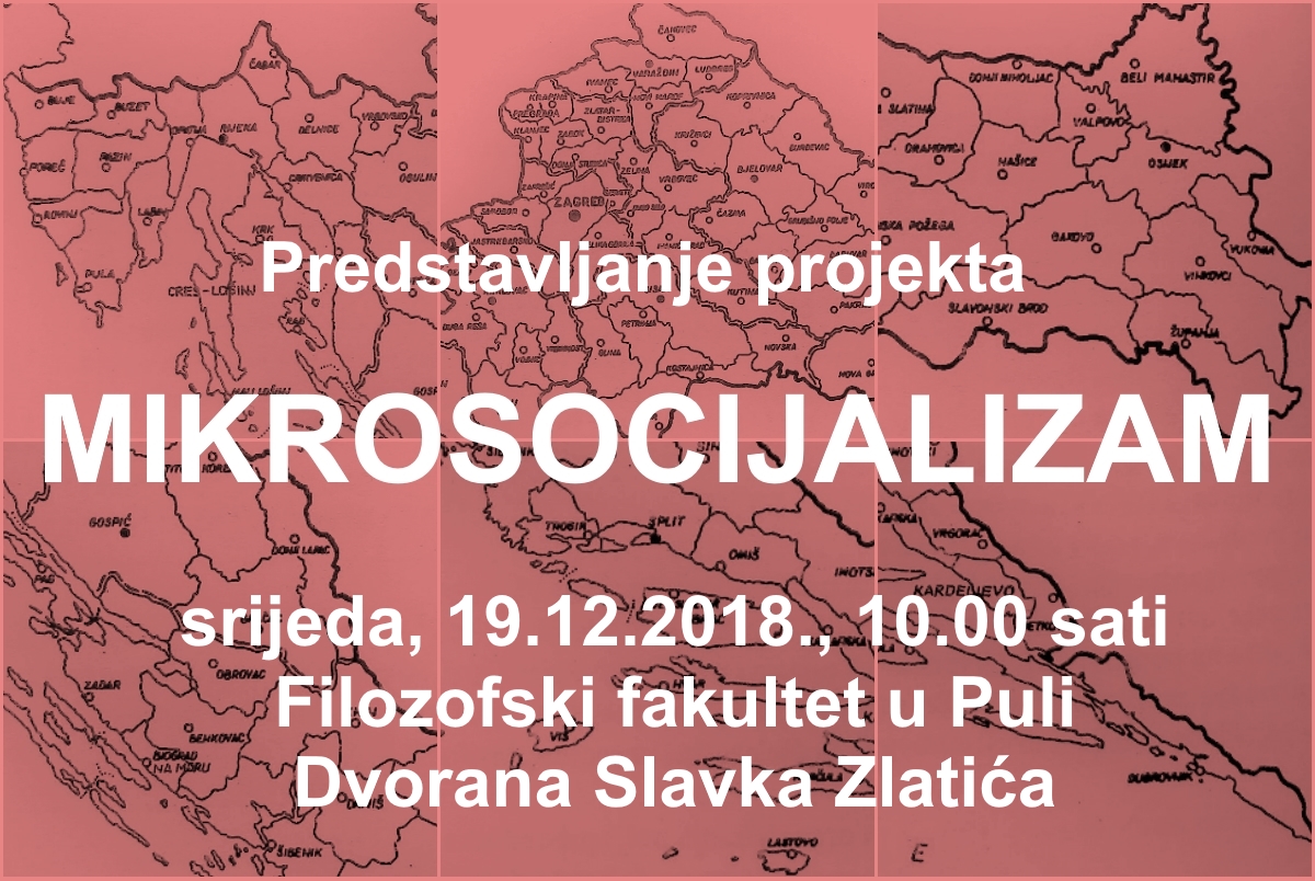 U srijedu, 19. prosinca 2018., u 10 sati u Dvorani Slavka Zlatića na Filozofskom fakultetu u Puli održano je predstavljanje istraživačkog projekta Mikrostrukture jugoslavenskoga socijalizma: Hrvatska 1970-1990. (Mikrosocijalizam). Rad na projektu upravo je započeo, a do studenog 2022. financirat će ga Hrvatska zaklada za znanost. Projekt su predstavili voditelj Igor Duda te suradnici Chiara Bonfiglioli, Anita Buhin, Tina Filipović, Magdalena Najbar-Agičić, Christian Axboe Nielsen i Saša Vejzagić. Više o svemu na mrežnim stranicama projekta.