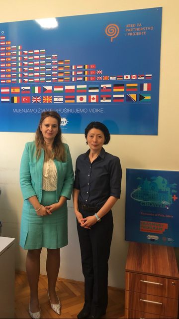 On October 22nd, 2019 Mrs. Miyuki Arai wisited Juraj Dobrila University of Pula within Erasmus+ programme. Head of the Office for Partnership and Projects, Ivona Peternel, PhD hosted Mrs. Arai for a meeting during wich they discussed further cooperation terms and developmet within Erasmus+ programme. As Juraj Dobrila University of Pula and Saint Mary's University have active cooperation in academic year 2019/2020 it is in interest of both to strenghten present cooperation and agree on best terms for exchange programme paticipants.